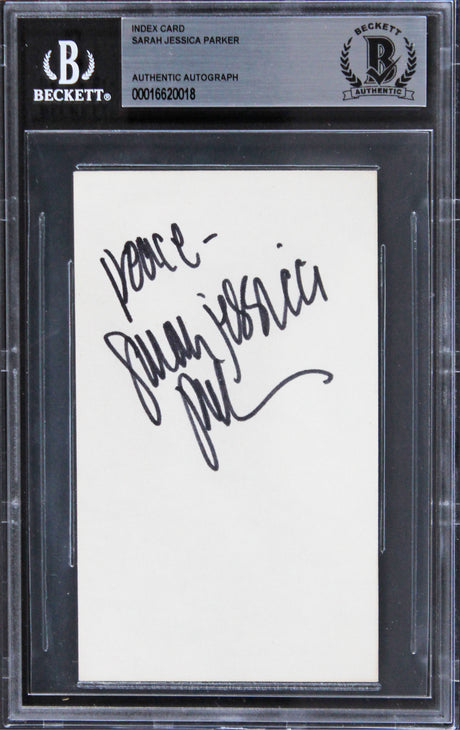 Sarah Jessica Parker Sex And The City "Peace" Signed 3x5 Index Card BAS Slabbed