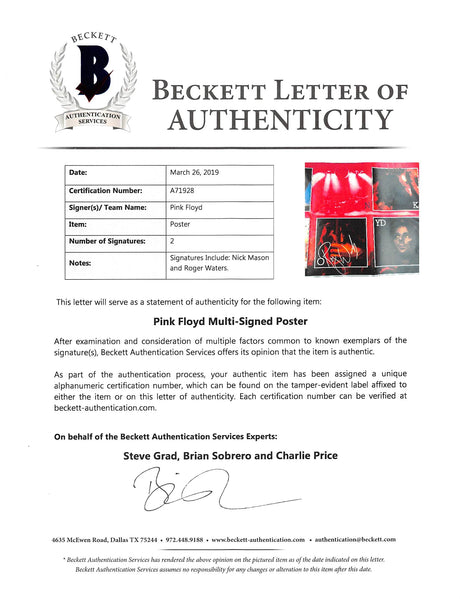 Roger Waters & Nick Mason Pink Floyd Authentic Signed 20x30 Poster BAS #A71928