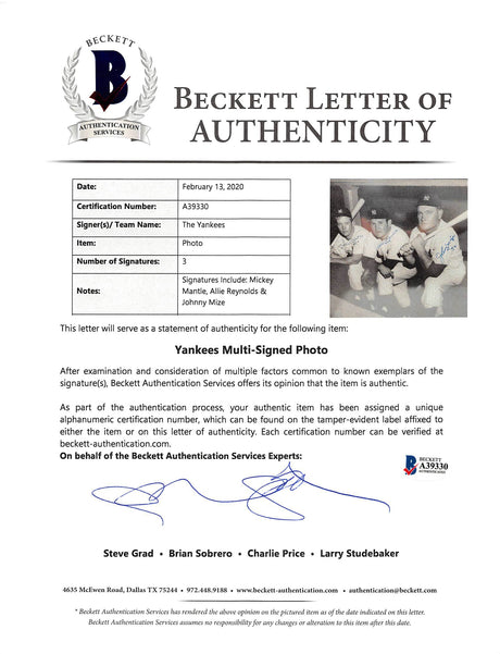 Yankees (3) Mantle, Reynolds & Mize Signed 16x20 Framed Photo BAS #A39330