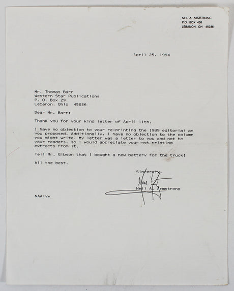 Neil Armstrong Apollo 11 Authentic Signed 8.5x11 1994 Typed Letter BAS #AC33408