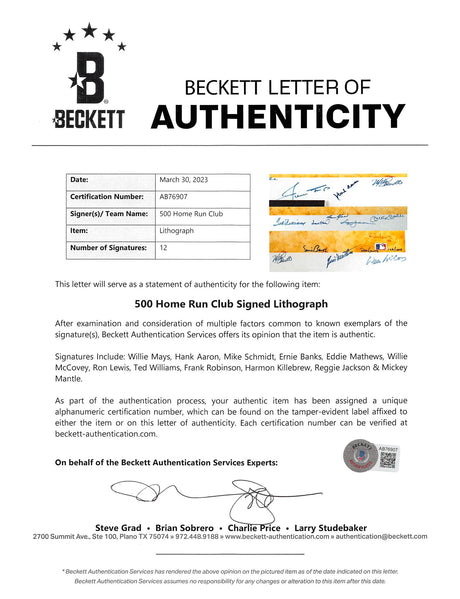 500 HR Club (12) Aaron, Williams, Mantle +9 Signed & Framed 23.5x38 Litho BAS