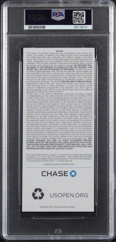 Serena Williams Authentic Signed 2014 U.S. Open Ticket Stub PSA/DNA Slabbed