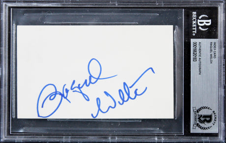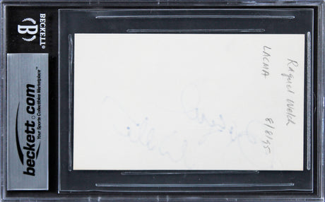 Raquel Welch The Three Musketeers Signed 3x5 Index Card w/ Blue Sig BAS Slabbed