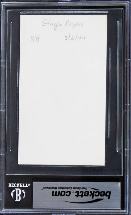 Ginger Rogers Kitty Foyle "1994" Authentic Signed 3x5 Index Card BAS Slabbed