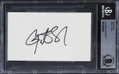 Very low stock (1 unit)$339Unit price /Unavailable Grant Show Melrose Place Authentic Signed 3x5 Index Card Autographed BAS Slabbed