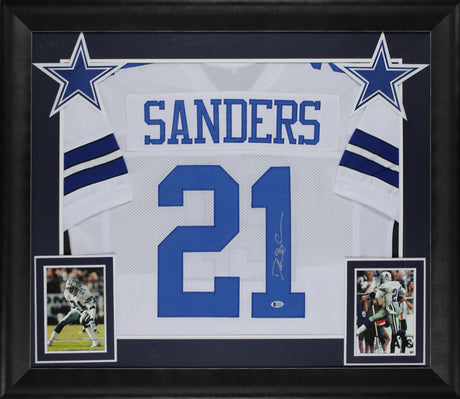Deion Sanders Authentic Signed White Pro Style Framed Jersey BAS Witnessed