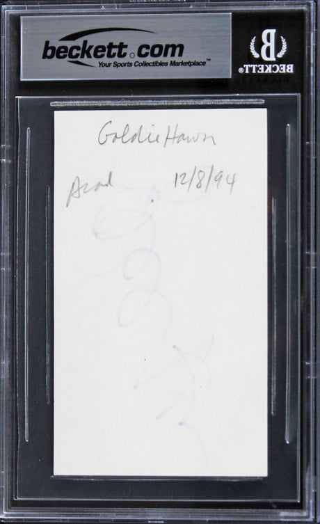 Goldie Hawn Overboard Authentic Signed 3x5 Index Card Autographed BAS Slabbed