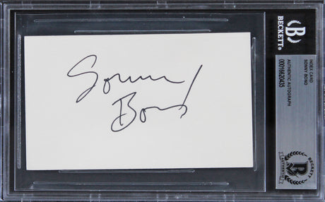 Sonny Bono The Sonny and Cher Show Authentic Signed 3x5 Index Card BAS Slabbed