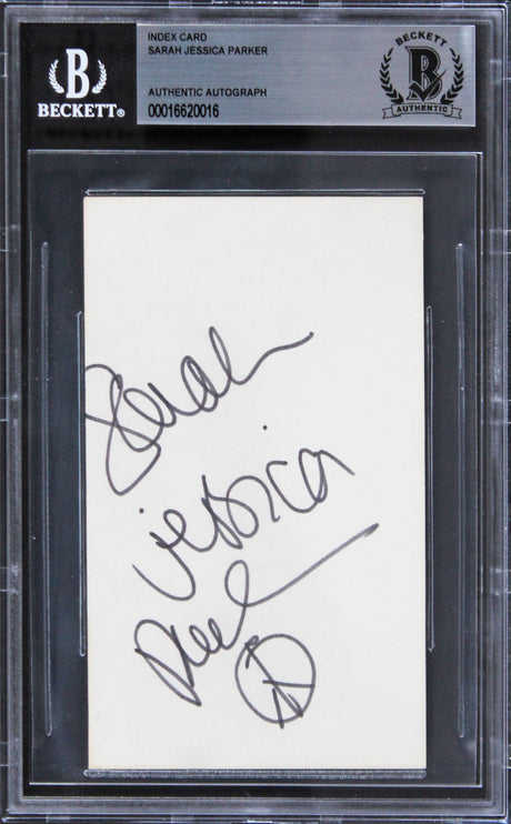 Sarah Jessica Parker Sex And The City "Peace" Signed 3x5 Index Card BAS Slabbed