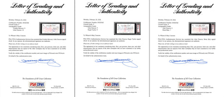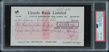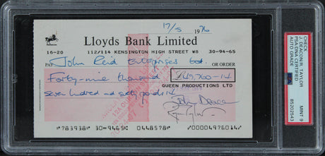 Queen (4) Mercury, May, Deacon, Taylor Signed 1976 Bank Set Of 3 Checks PSA Slab