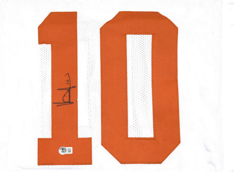 Vince Young Autographed White College Style STAT Jersey - Beckett W Hologram