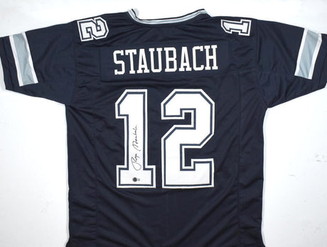 Roger Staubach Autographed Blue Pro Style Jersey-Beckett W Hologram *Black