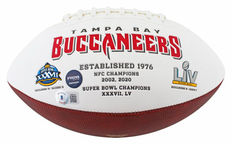 Bucs (4) Sapp, Brooks, Barber & Alstott Signed White Panel Logo Football BAS Wit