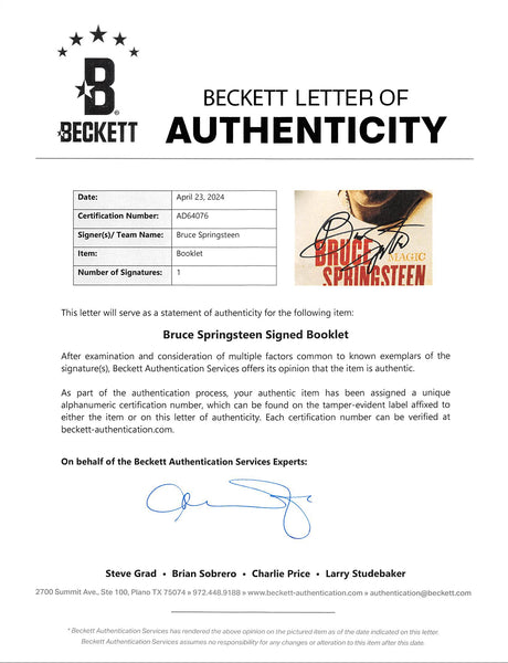 Bruce Springsteen Authentic Signed 6x8 Magic Booklet Autographed BAS #AD64076