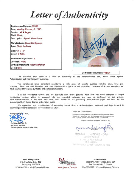 Mick Jagger Authentic Signed She's The Boss Album Cover W/ Vinyl JSA #Y58725