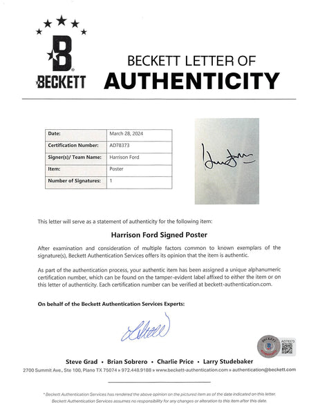 Harrison Ford Indiana Jones Signed & Framed 27x40 Movie Poster BAS #AD78373
