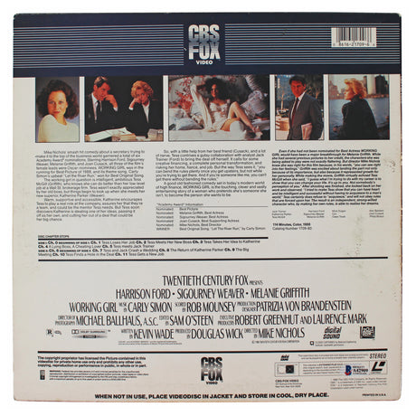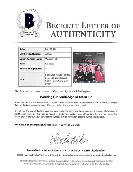 Working Girl (4) Ford, Weaver, Griffith & Simon Signed Laserdisc Cover BAS