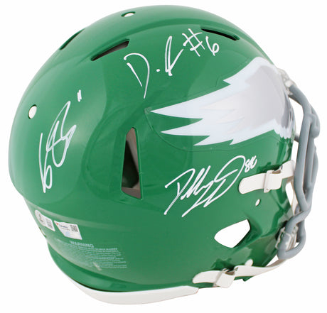 Eagles (3) Brown, Goedert & Smith Signed F/S Speed Proline Helmet W/ Case BAS W
