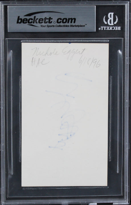 Very low stock (1 unit)$169Unit price /Unavailable Nicole Eggert Charles in Charge Authentic Signed 3x5 Index Card BAS Slabbed