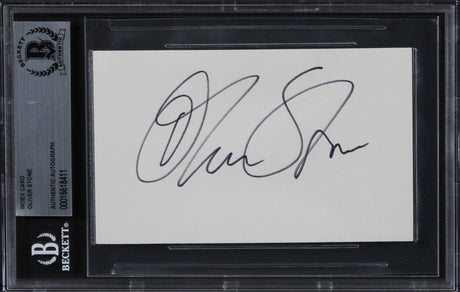 Oliver Stone Platoon Authentic Signed 3x5 Index Card Autographed BAS Slabbed 1