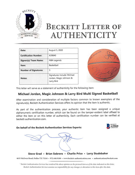NBA HOF Legends (3) Jordan, Bird & Johnson Signed NBA Basketball BAS #A39840