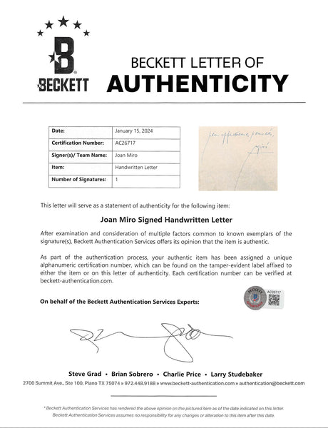 Joan Miro Authentic Signed 8.5x11 1959 4 Page Handwritten Letter BAS #AC26717