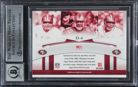 49ers Montana, Rice & Craig Signed 2008 Donruss Threads #6 Card Auto 10 BAS Slab