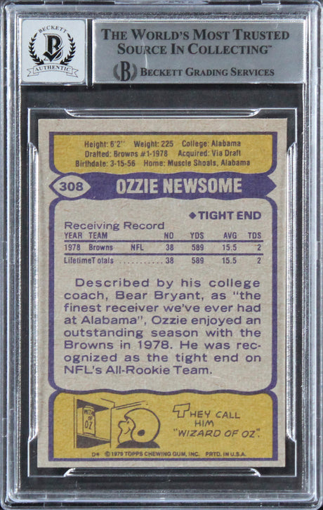 Browns Ozzie Newsome "HOF 99" Signed 1979 Topps #308 Card Auto 10! BAS Slabbed