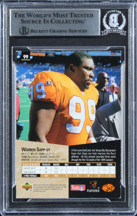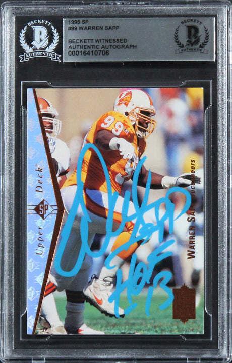 Buccaneers Warren Sapp "HOF 13" Signed 1995 SP #99 Rookie Card Auto 10! BAS Slab