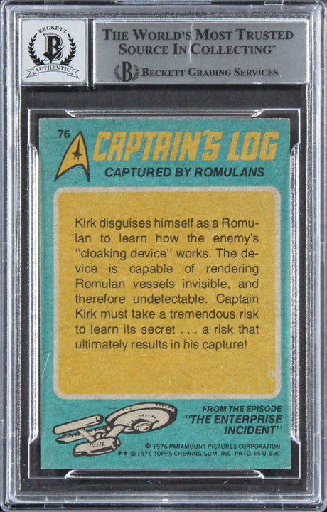 William Shatner Star Trek Signed 1976 Topps Star Trek #76 Card Auto 10! BAS Slab