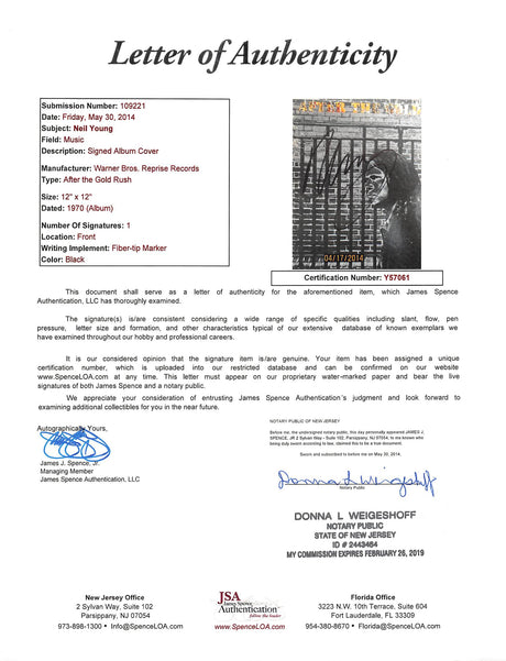Neil Young Authentic Signed After The Gold Rush Album Cover W/ Vinyl JSA #Y57061