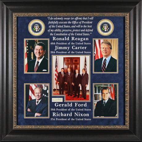 US Presidents (4) Reagan, Carter, Ford & Nixon Signed Framed Display BAS