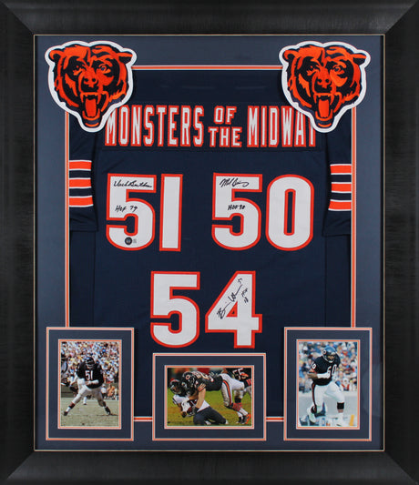 Monsters Of The Midway (3) Butkus, Singletary +1 Signed Navy Framed Jersey BAS