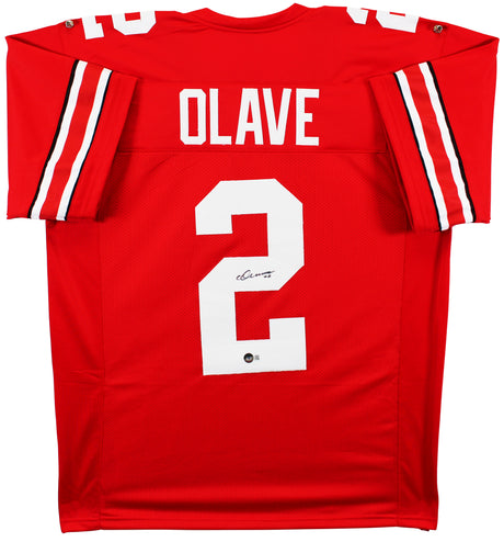 Ohio State Chris Olave Authentic Signed Red Pro Style Jersey BAS Witnessed