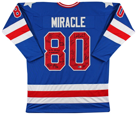 1980 USA Hockey 19 Autos Craig, Eruzione, Broten Signed Blue Jersey BAS Wit 2
