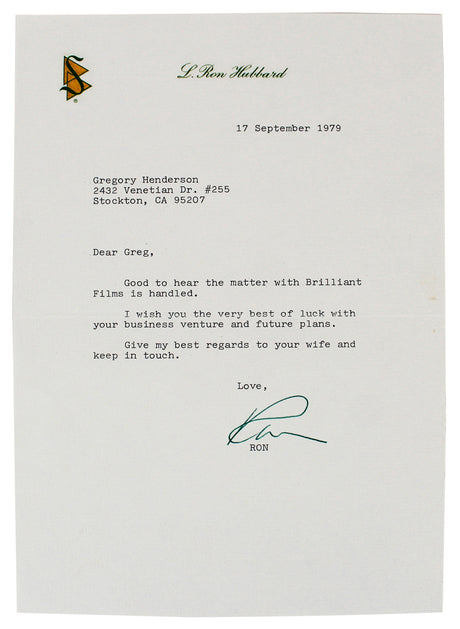 L. Ron Hubbard Scientology Signed 7x10 1979 Letter on Personal Letterhead BAS