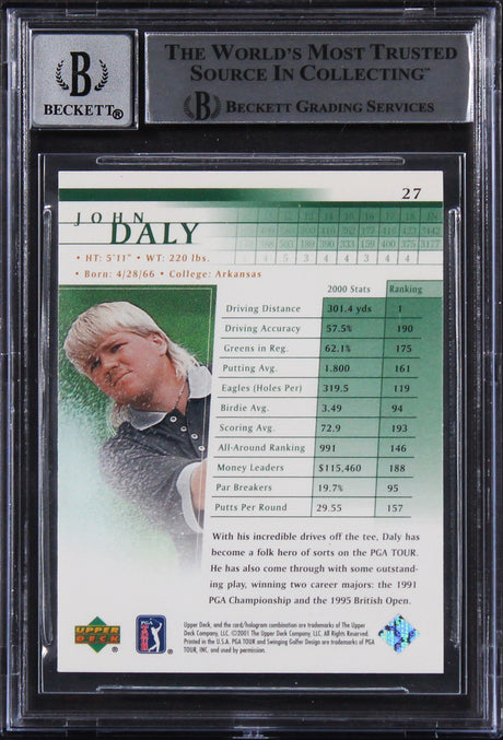 John Daly Signed 2001 Upper Deck #27 Card Auto Graded Gem Mint 10! BAS Slabbed
