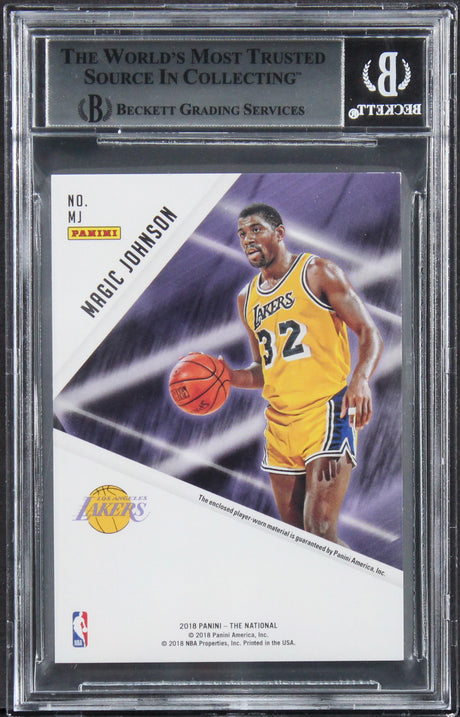Magic Johnson Signed 2018 Panini National Convention Mem #MJ Card BAS Slabbed
