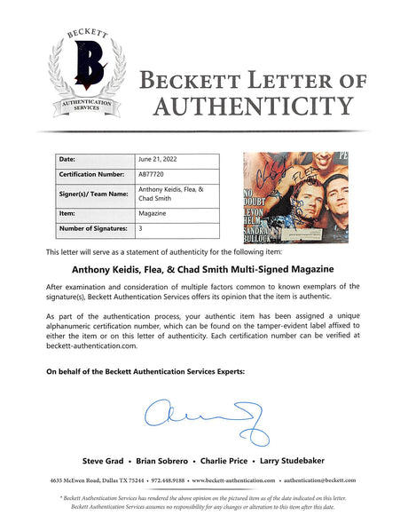 RHCP (3) Keidis, Flea & Smith Signed Rolling Stone Magazine BAS #AB77720