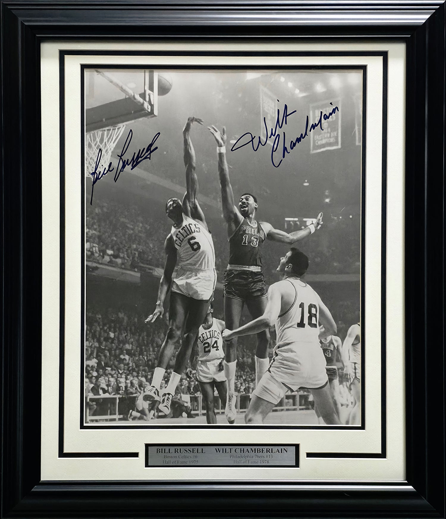 - Hand-signed by NBA legends Wilt Chamberlain & Bill Russell – a monumental pairing of Hall of Fame talent