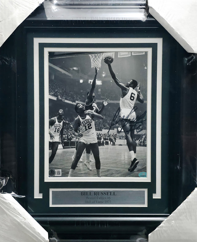 Own a piece of basketball history with this Framed 8x10 Photo autographed by NBA legend Bill Russell. Measuring approximately 15x18 inches with the frame, this collectible showcases an authentic hand-signed signature from one of the most iconic figures in sports history. A cornerstone of the Boston Celtics dynasty, Bill Russell led the team to 11 NBA championships between 1957 and 1969, earning a reputation as one of the greatest defensive players the game has ever seen. His legacy extends beyond the court, making this item a must-have for collectors and fans alike. Certified by Beckett Authentication Services (BAS), this photo includes their tamper-proof hologram and a full-page Certificate of Authenticity for verified provenance.