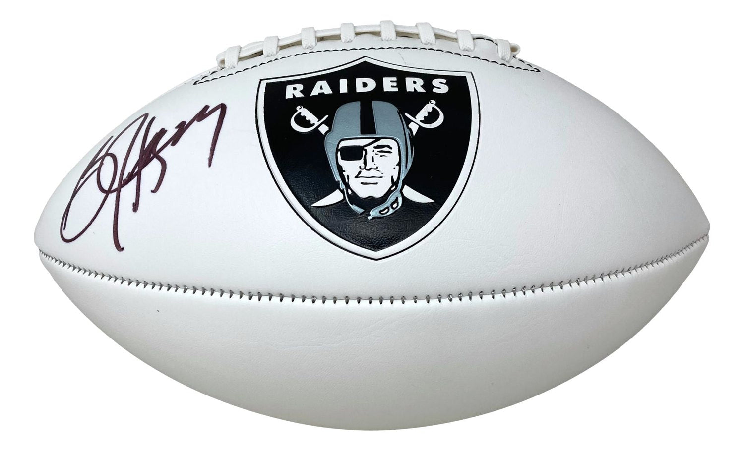 Own a piece of football history with this Bo Jackson signed Oakland Raiders logo football. A true icon in both professional baseball and football, Bo Jackson made an unforgettable impact on the NFL during his time with the Los Angeles Raiders (now Las Vegas Raiders) in the late 1980s. This collector's piece captures Jackson’s remarkable athletic legacy and is a must-have for passionate fans and serious sports memorabilia collectors alike.