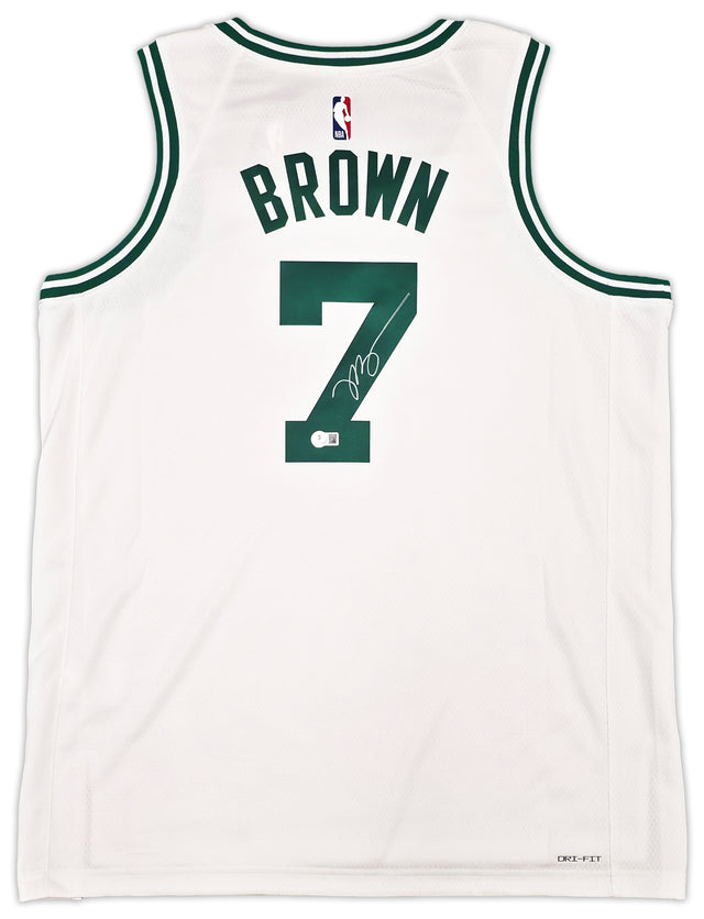 Boston Celtics Jaylen Brown Autographed White Nike Swingman Association Edition Jersey Size 52 Beckett BAS Witness Stock #256846 is backordered and will ship as soon as it is back in stock.
