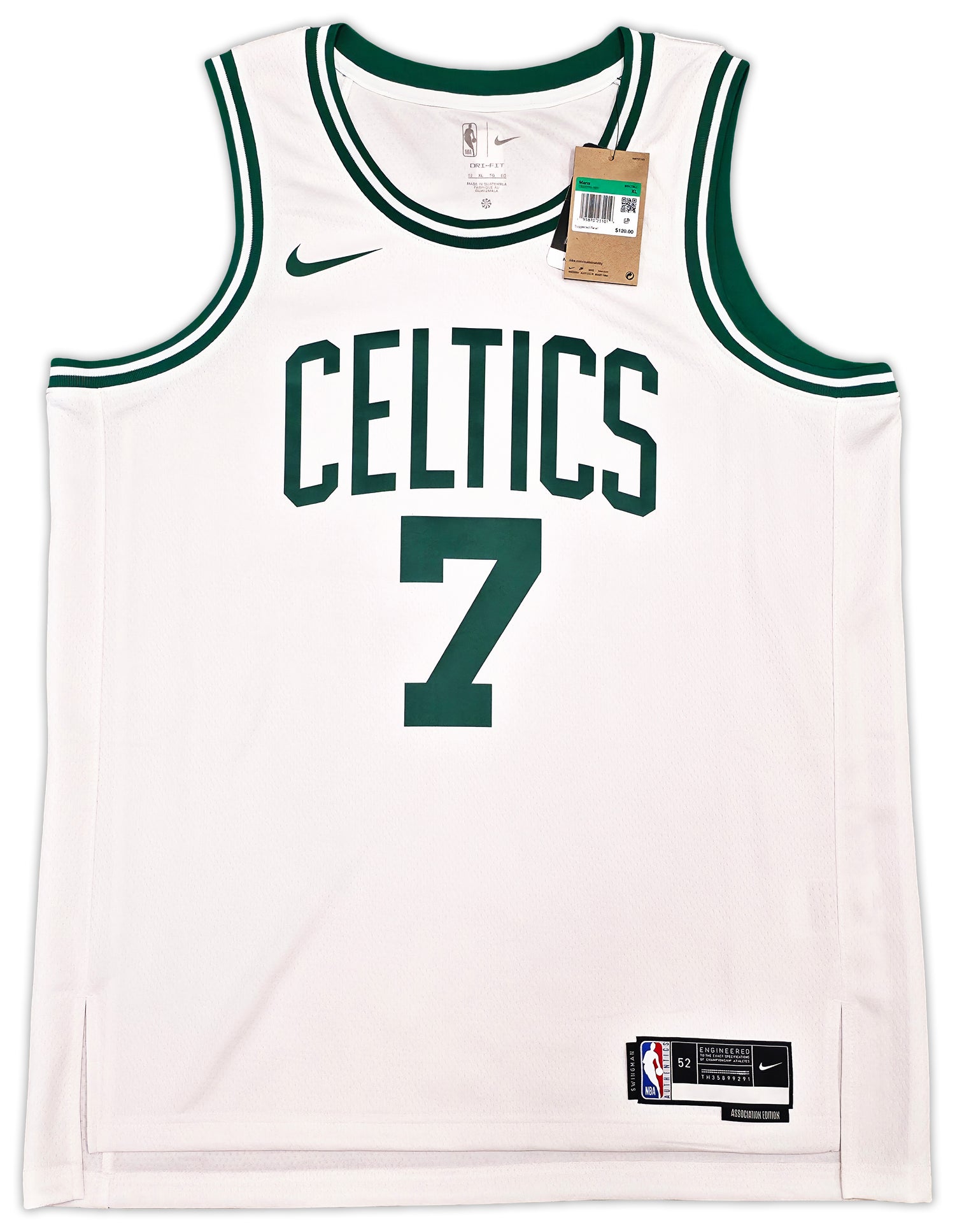 Celebrate your Celtics pride and honor one of today's rising NBA stars with this White Nike Boston Celtics Swingman Association Edition Jersey hand signed by Jaylen Brown. A key member of the Boston Celtics’ core and a 2x NBA All-Star, Jaylen Brown’s autograph adds exceptional value to this authentic collectible. Whether you're a die-hard Celtics fan or a serious memorabilia collector, this game-style jersey makes a standout addition to your collection.