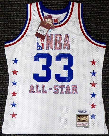 Larry Bird Autographed Celtics White M&N Hardwood Classic Swingman JSY-BAW Holo