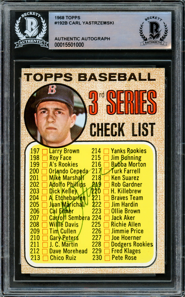 Carl Yastrzemski Autographed 1968 Topps Card #192 Boston Red Sox Vintage Signature Beckett BAS #15501000