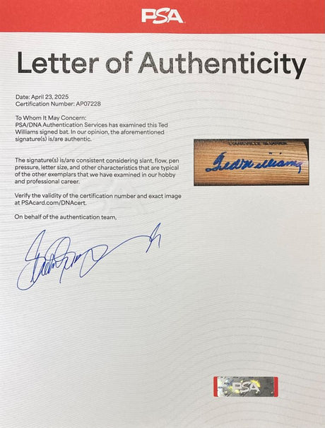 Ted Williams Boston Red Sox Signed Louisville Slugger Bat PSA/DNA LOA