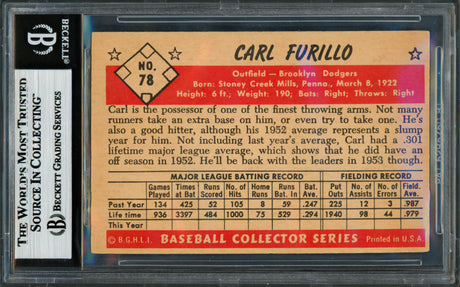 Very low stock (1 unit)$109Unit price /UnavailableCarl Furillo Autographed 1953 Bowman Color Card #78 Brooklyn Dodgers Beckett BAS #18630006