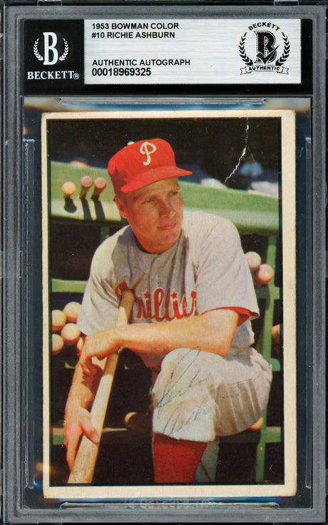 Richie Ashburn Autographed 1953 Bowman Color Card #10 Philadelphia Phillies Beckett BAS #18969325