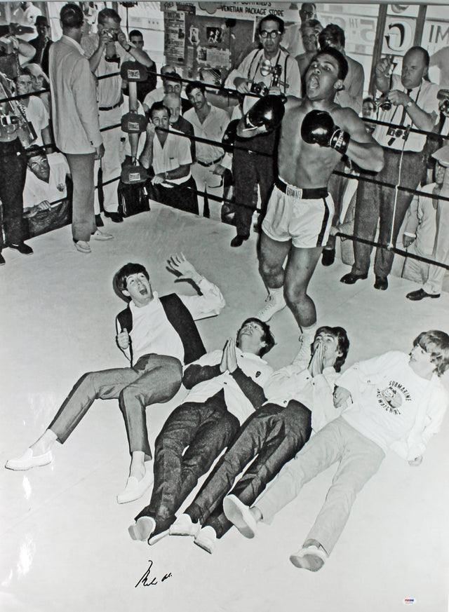 Own a rare piece of boxing history with this authentic 30x40 signed photo personally autographed by the legendary Muhammad Ali. This exclusive collectible is 100% certified authentic, featuring a PSA/DNA In The Presence (ITP) hologram (#4A40555) and a Certificate of Authenticity (COA)—ensuring its legitimacy with PSA representatives witnessing the signing firsthand.